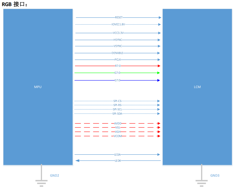 2 ເສັ້ນທາງທີ່ມີປະໂຫຍດ: ການໂຕ້ຕອບທີ່ເປັນປະໂຫຍດ RGB ແມ່ນຄວາມໄວສູງ "ຊ່ອງທາງຂໍ້ມູນທີ່ມີຄວາມໄວສູງ" ທີ່ບໍ່ສາມາດສົ່ງຕໍ່ໄດ້. ດັ່ງນັ້ນ, ໃນໂຄງການ LCD Custom, ມັນມັກຈະຮ່ວມມືກັບການໂຕ້ຕອບຄວບຄຸມເຊັ່ນ SPI, ເຊິ່ງຈັດການກັບການເລີ່ມຕົ້ນແລະການຈັດການຈໍ.