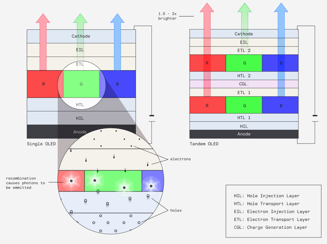 ນອກຈາກນັ້ນ, ໂຄງສ້າງ tandem ຫຼາຍຊັ້ນຈັດລຽງລໍາດັບທີ່ມີການຍົກຍ້າຍຫຼາຍຫົວຂໍ້ໂດຍຜ່ານຊັ້ນລຸ້ນທີ່ຮັບຜິດຊອບ (CGL), ຍົກສູງຄວາມສະຫວ່າງໃນຂະນະທີ່ອຸປະກອນອາຍຸ. ເຕັກໂນໂລຢີເຫຼົ່ານີ້ມີຕໍ່ໄປຕື່ມອີກຕໍ່ການແກ້ໄຂບັນຫາການຜະລິດລະເບີດຝັງດິນຂະຫນາດໃຫຍ່ເຊັ່ນ: ສວມໃສ່ແລະ qd-oled.