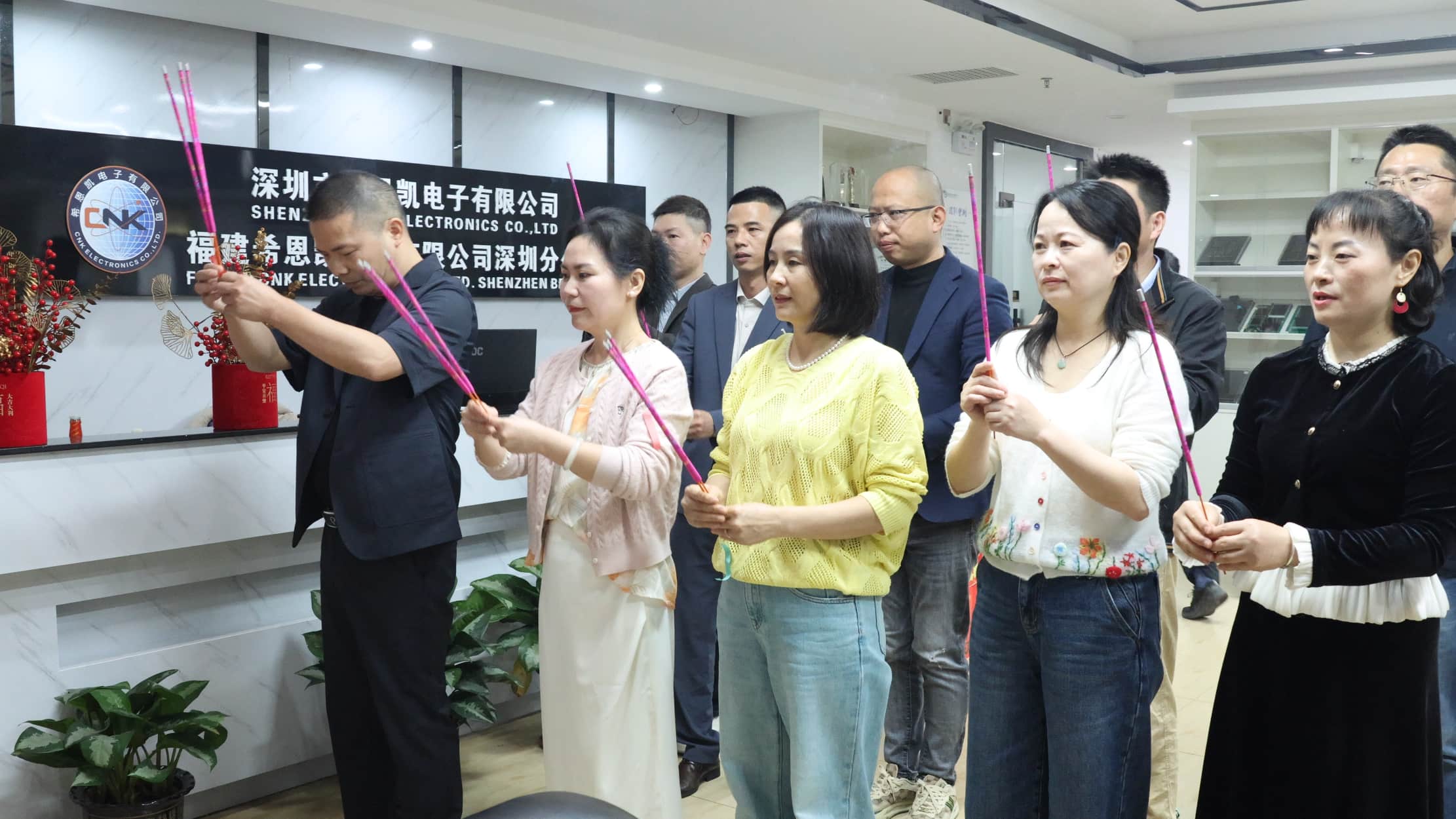ຕອນຮຸ່ງເຊົ້າ, ຜູ້ນຳສູງສຸດຂອງບໍລິສັດໄດ້ເຕົ້າໂຮມກັນແລະນຳພາພະນັກງານທັງໝົດຈັດພິທີເປີດງານຢ່າງໃຫຍ່ຫຼວງ. ຄວັນເຄື່ອງຫອມໄດ້ລຸກຂຶ້ນຈາກໂຕະ ແລະເຄື່ອງຖວາຍກໍອຸດົມສົມບູນ. ສິ່ງດັ່ງກ່າວບໍ່ພຽງແຕ່ສະແດງເຖິງຄວາມເຄົາລົບນັບຖືຕໍ່ສະຫວັນ ແລະ ແຜ່ນດິນໂລກເທົ່ານັ້ນ, ແຕ່ຍັງໄດ້ສົ່ງຄຳອວຍພອນອັນຈິງໃຈຂອງພະນັກງານທຸກຄົນໃຫ້ມີຄວາມຈະເລີນຮຸ່ງເຮືອງຕະຫຼອດປີດ້ວຍອາກາດທີ່ເອື້ອອຳນວຍ ແລະ ດຳເນີນທຸລະກິດທີ່ສະດວກສະບາຍ. ທ່າມກາງການຈູດທູບທຽນ, ຜູ້ນຳໄດ້ຖະຫວາຍທູບທຽນບູຊາດ້ວຍຄວາມອຸທິດຕົນອັນຍິ່ງໃຫຍ່, ອະທິຖານຂໍພອນ ແລະ ໂຊກດີໃຫ້ແກ່ແຜນການໃຫຍ່ຂອງບໍລິສັດໃນປີໃໝ່.